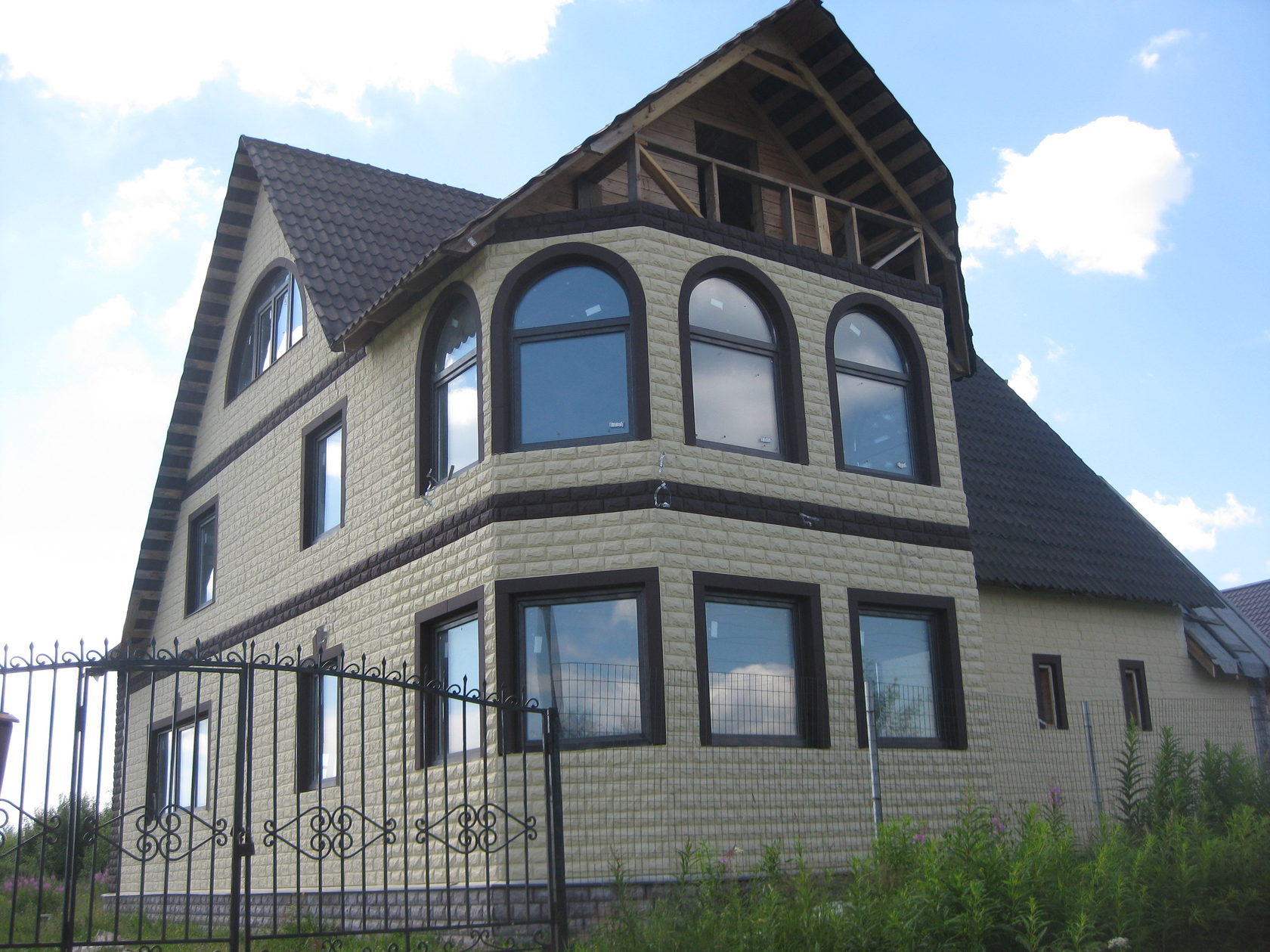 Строение приобретает солидный и дорогой вид. Каменные панели придают объем дому за счет своей фактуры, а так же могут быть покрашены в любой цвет на ваш выбор.