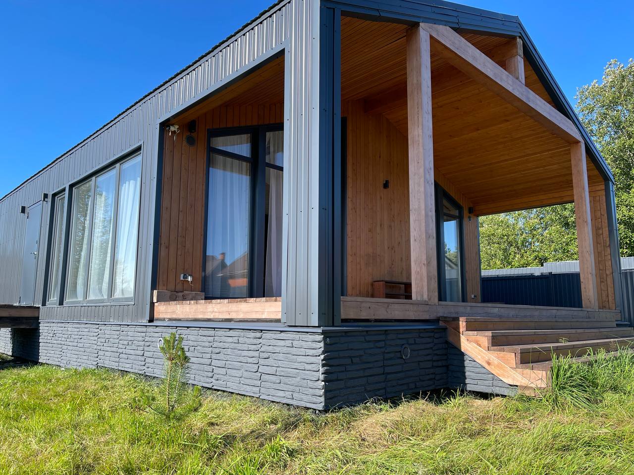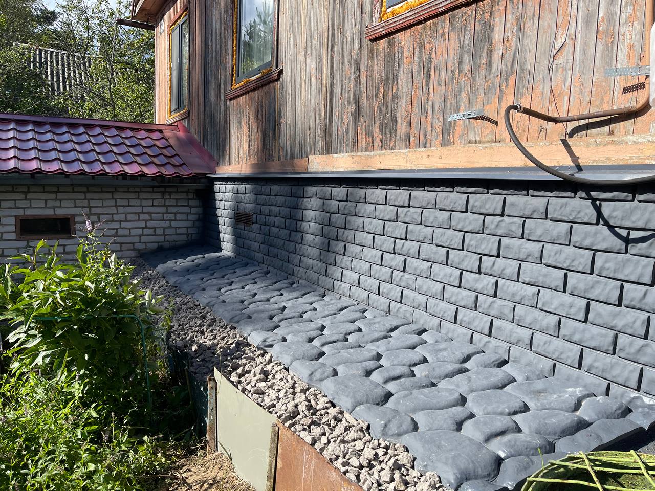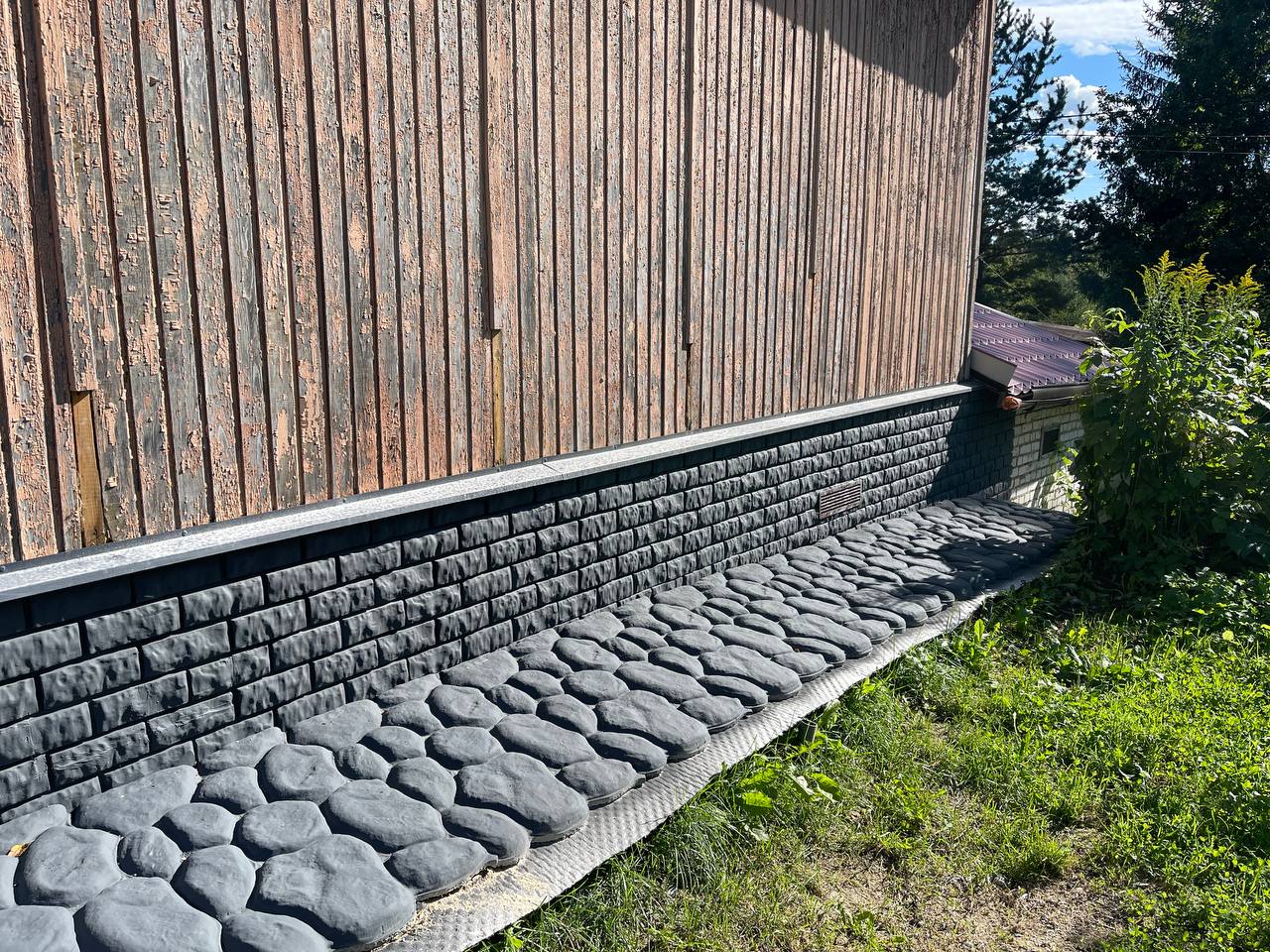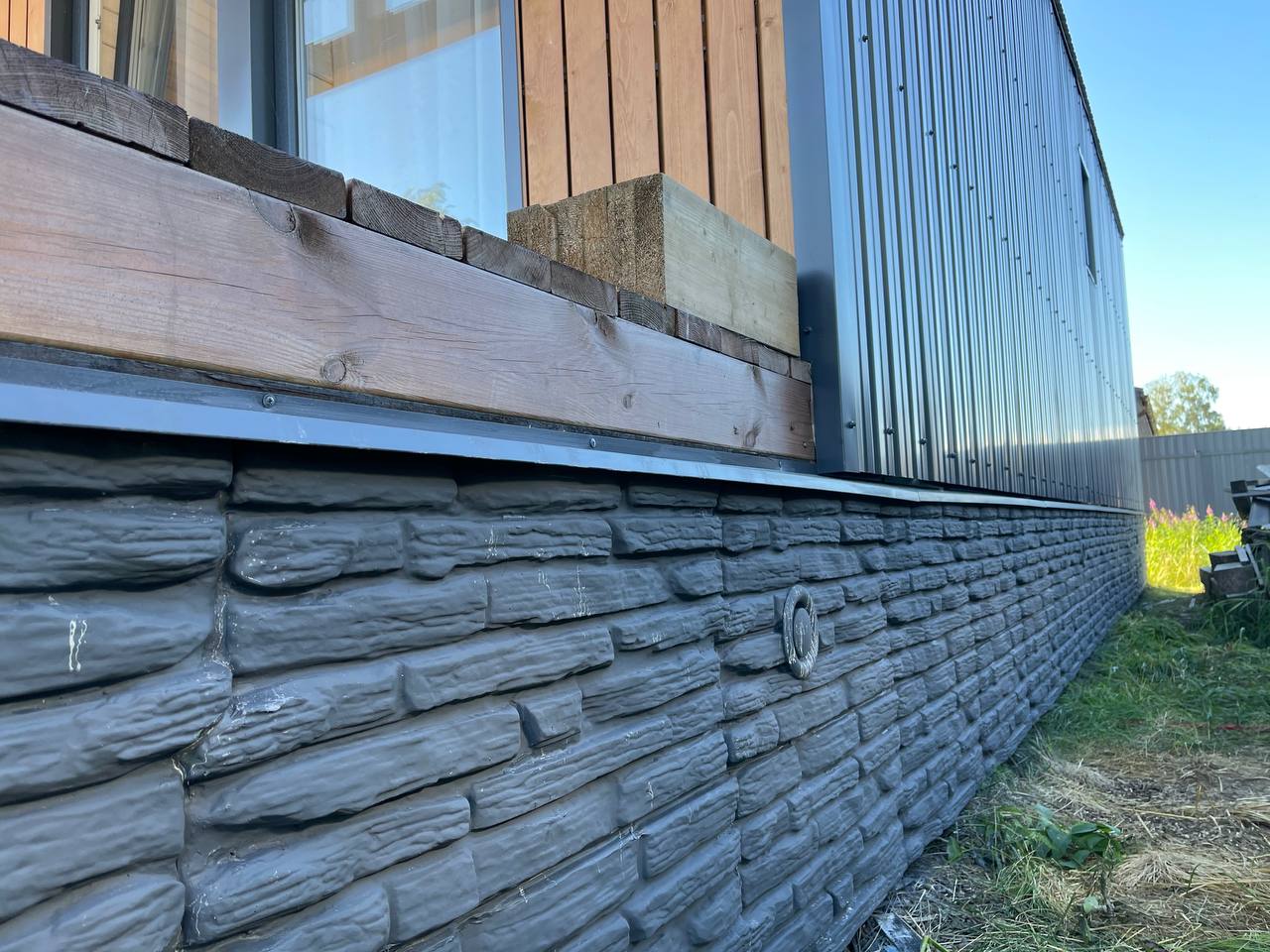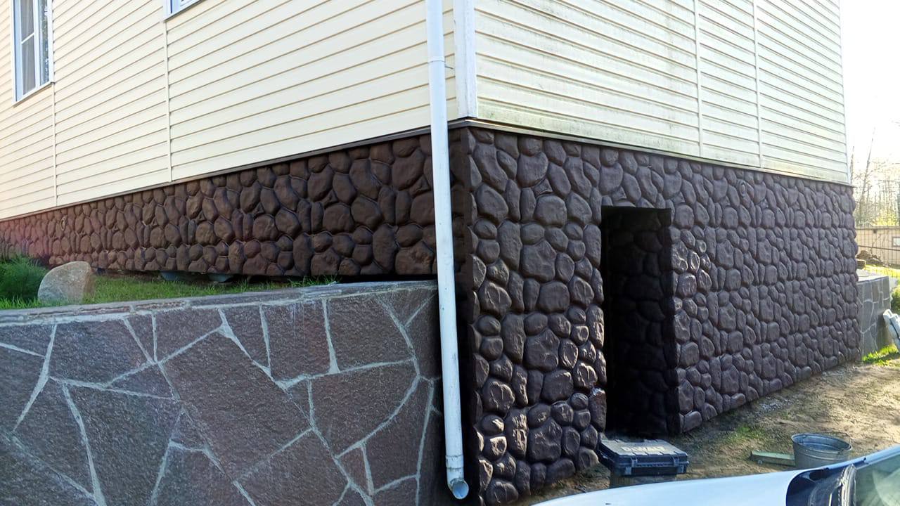 Легкие каменные панели используются для отделки винтовых свай, отделки бетонного цоколя, облицовки фасада деревянного, каркасного или газобетонного дома. Часто панели используют для устранения изъянов цоколя или фасада.